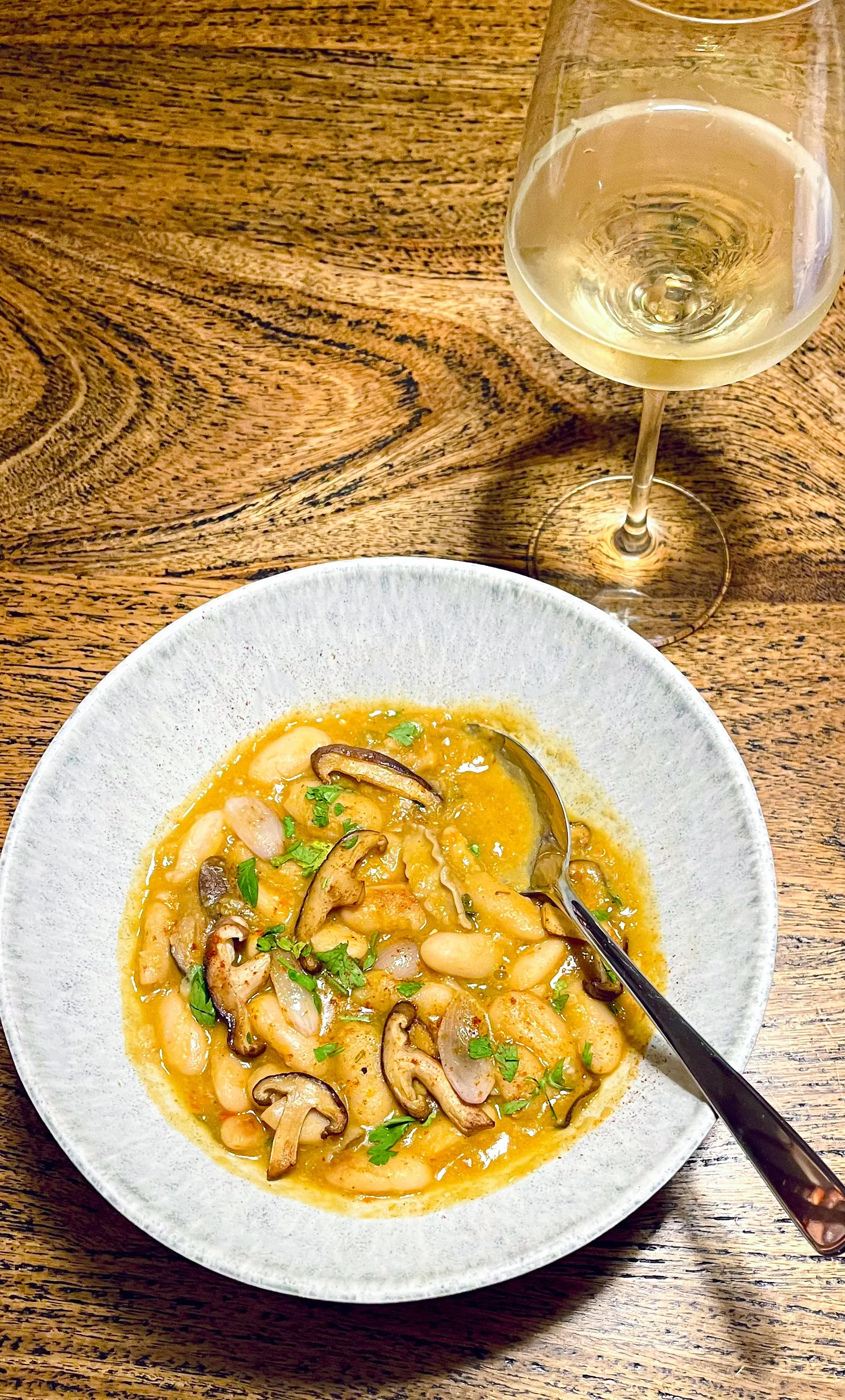 SPAIN'S NORTH KNOWS A THING OR TWO ABOUT HEARTY, NO-NONSENSE FOOD, AND ASTURIAS’ LEGENDARY “FABES” (BEANS) ARE AT THE TOP OF THE LIST. THESE THICK-SKINNED BEAUTIES SOAK UP EVERY DROP OF FLAVOR, PERFECT FOR CHILLY DAYS AND A COZY BOWL. HERE, I’VE STEERED THESE BEANS INTO A SMOKY, PAPRIKA-INFUSED STEW WITH A BLEND OF EARTHY MUSHROOMS, WHICH ADDS A DEPTH THAT’S AS RUGGED AS THE MOUNTAINS THEY COME FROM. A NOD TO SPANISH TRADITION, THIS DISH TAKES CLASSIC ASTURIAS COMFORT AND CRANKS IT UP. IT’S FUCKING WILD, A BIT EARTHY, AND ALL KINDS OF GOOD. PAIR IT WITH A STRONG DRINK, WRAP UP, AND PREPARE TO QUESTION WHY YOU EVER DOUBTED VEGGIES…OR BEANS… OR WHATEVER.